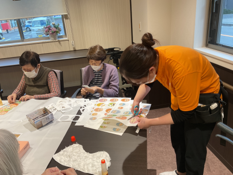 ⇒1月の壁飾り担当スタッフも入居者様と一緒に制作していたので