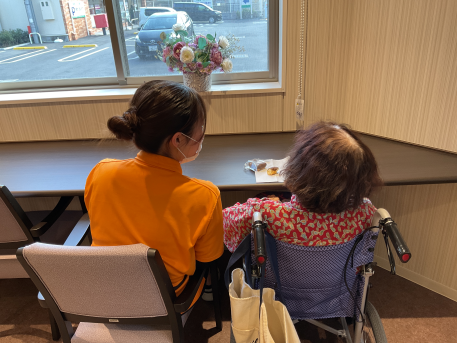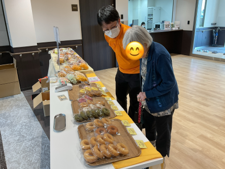 甘いお菓子が大好きな利用者様がおられ、「ぜひ食べてほしい!」と思い、訪問販売が来ていることをお伝えにいくと、「ドーナツ来てるの??行きたいけどしんどいね…」とのお返事。