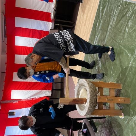 2周年をお祝いするイベントとしてお餅つきとスペシャルゲストの『すいたん』に登場していただきました